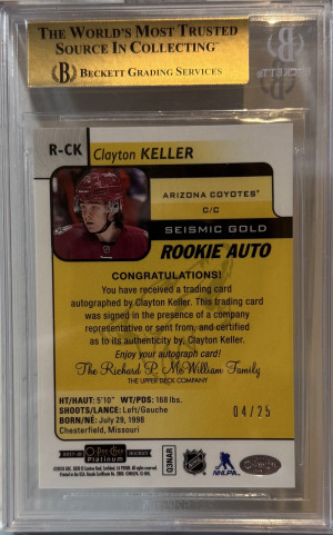 2017-18 O-Pee-Chee Platinum Clayton Keller Seismic Golf Rookie Auto /25 Bgs 9.5