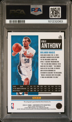 2020 Panini Contenders Optic Cole Anthony Autograph Rookie Auto PSA 10