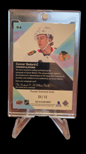Connor Bedard 2024-25 Upper Deck Allure Purple Diamond Auto 4/10 Blackhawks #94