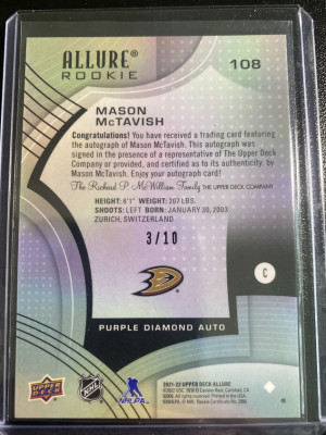 Mason McTavish 21-22 Allure Purple Diamond Auto 3/10