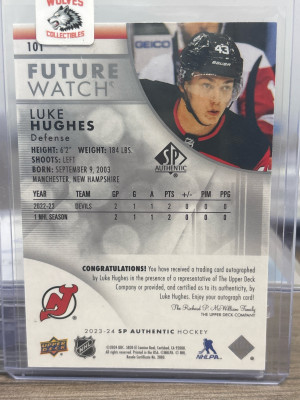 2023-24 SP Authentic Luke Hughes Future Watch Auto /999