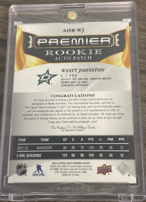2022-2023 Premier Wyatt Johnston RPA /99 Horizontal