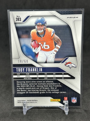 Troy Franklin 2024 Panini Prizm Orange Wave Prizm /60 Rookie RC #393 Broncos