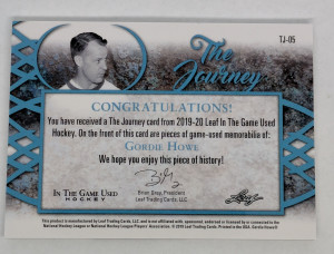2019-29 Leaf In The Game Used Hockey The Journey TJ-05 Gordie Howe 19/20