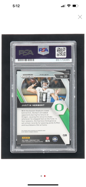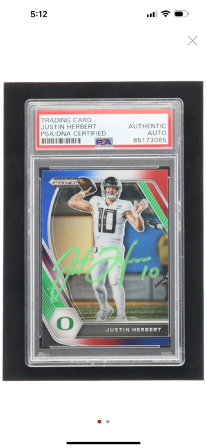 Justin Herbert Signed 2021 Panini Prizm Draft Picks Prizms Red White and Blue #20 (PSA)