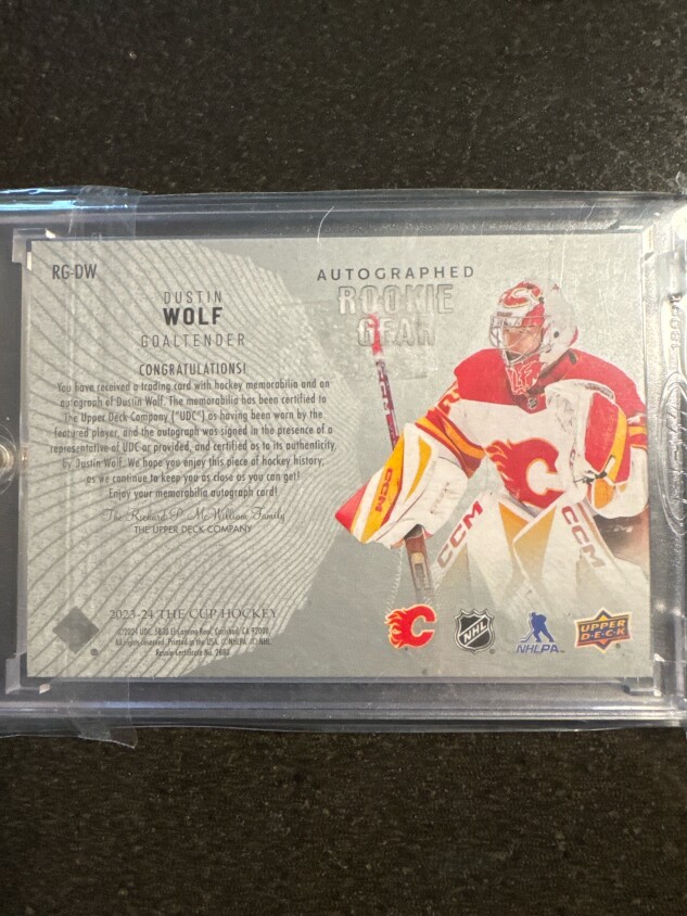 Dustin wolf 3 color cup rookie gear auto /24