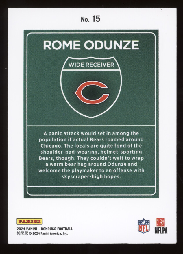 You are purchasing a 2024 Panini Donruss Football Downtown Rome Odunze #15 RC. You will receive the exact item in the photographs. Thank you for looking.