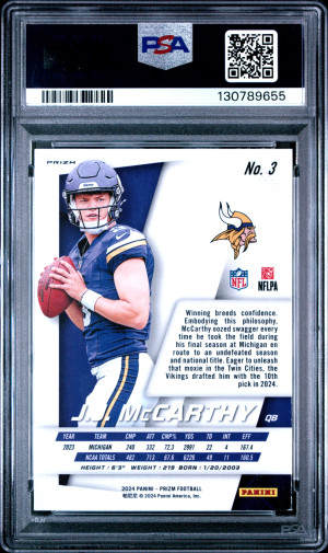 2024 Prizm - JJ McCarthy - No Huddle Flashback RC #3 - PSA 8