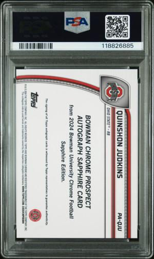 2024 Bowman Sapphire - Quinshon Judkins - Black Auto /10 - PSA 10 - GEM MINT