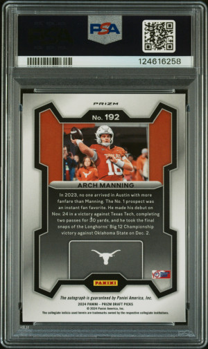 2024 Prizm Draft Picks - Arch Manning - Silver Auto #192 - PSA 10 GEM MINT