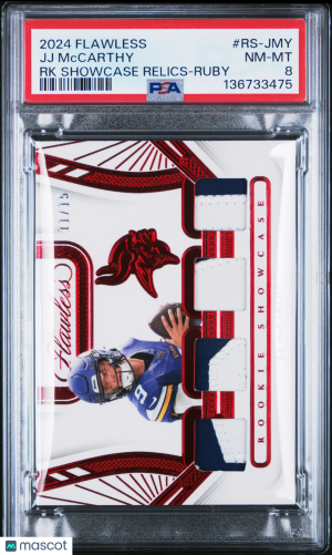 2024 Flawless - J.J. McCarthy - Rookie Showcase Quad Patch /15 - PSA 8