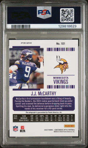 2024 Contenders Optic - JJ Mccarthy - Purple Pulsar Auto #101 - PSA 9 Auto 10