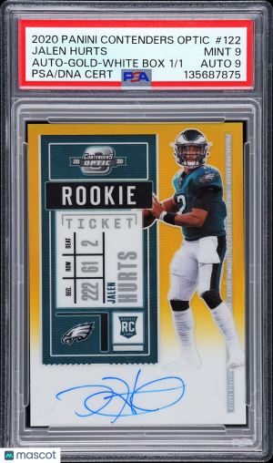 2020 Contenders Optic - Jalen Hurts - Gold Rookie Auto - 1 of 1 - PSA 9