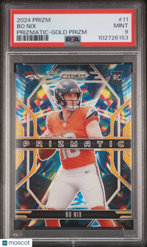 2024 Prizm - Bo Nix - Prizmatic Gold /10 #11 - RC Rookie - PSA 9