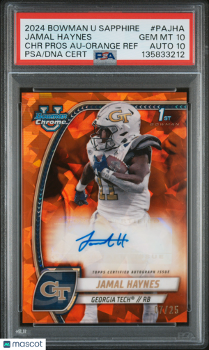 2024 Bowman Sapphire - Jamal Haynes - Orange Refractor Auto /25 - PSA 10 Auto 10