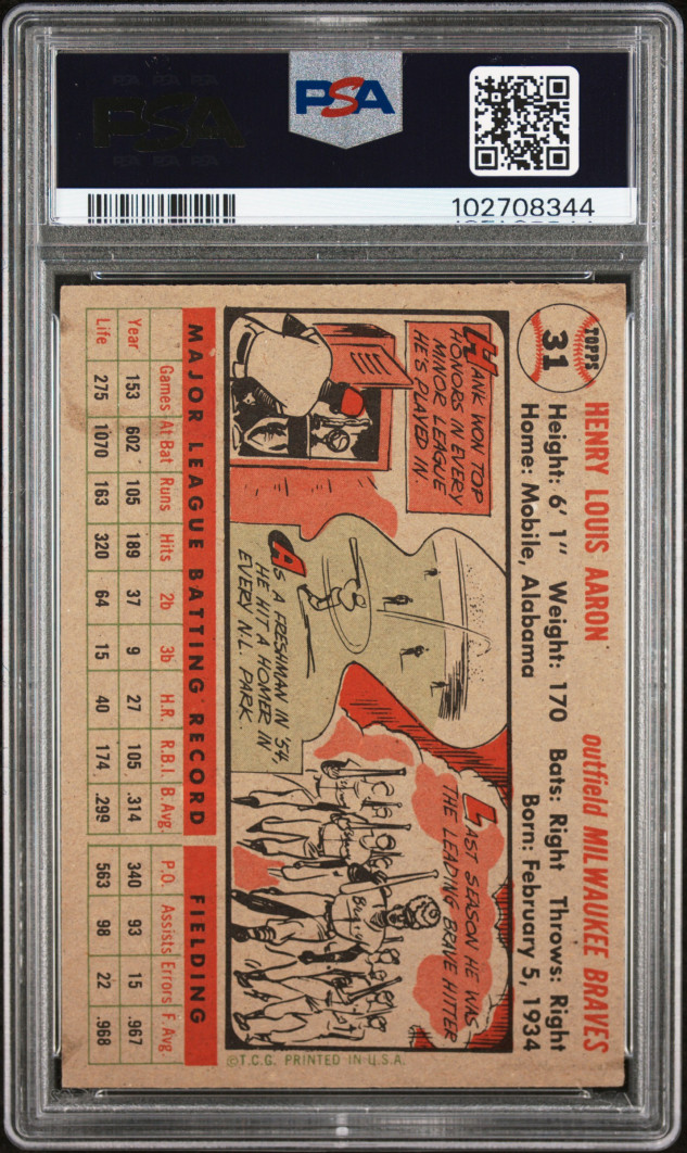1956 Topps #31 Gray Back - Hank Aaron PSA 2