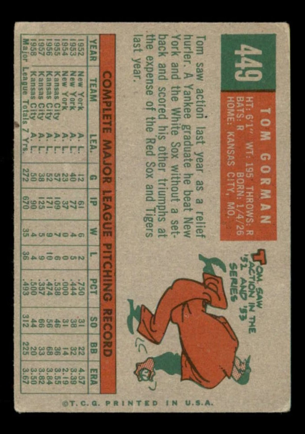 1959 Topps #449 Tom Gorman VG/VGEX