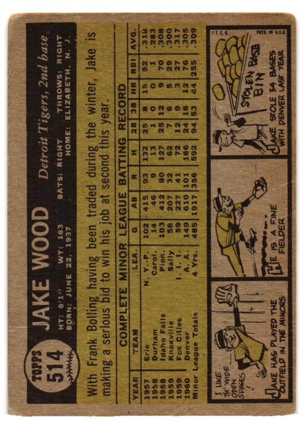 1961 Topps Baseball Set SEMI HIGH #514 Jake Wood VG Detroit Tigers
