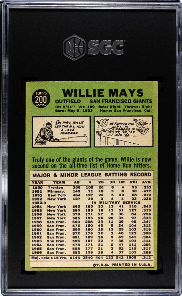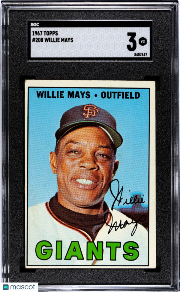 You are purchasing a 1967 Topps Willie Mays #200 SGC 3. You will receive the exact item in the photographs. Thank you for looking.