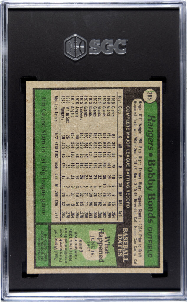 You are purchasing a 1979 Topps Bobby Bonds #285 SGC 8. You will receive the exact item in the photographs. Thank you for looking.