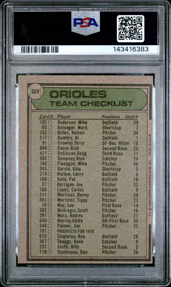 You are purchasing a 1979 Topps Orioles Team #689 PSA 8. You will receive the exact item in the photographs. Thank you for looking.