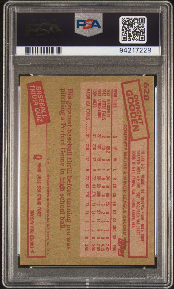 You are purchasing a 1985 Topps Dwight Gooden #620 [Base] Rookie Low Pop PSA A Auto 10. You will receive the exact item in the photographs.