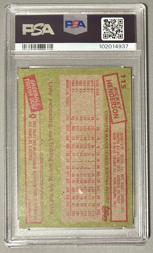 1985 Topps Rickey Henderson PSA 7 Oakland A’s