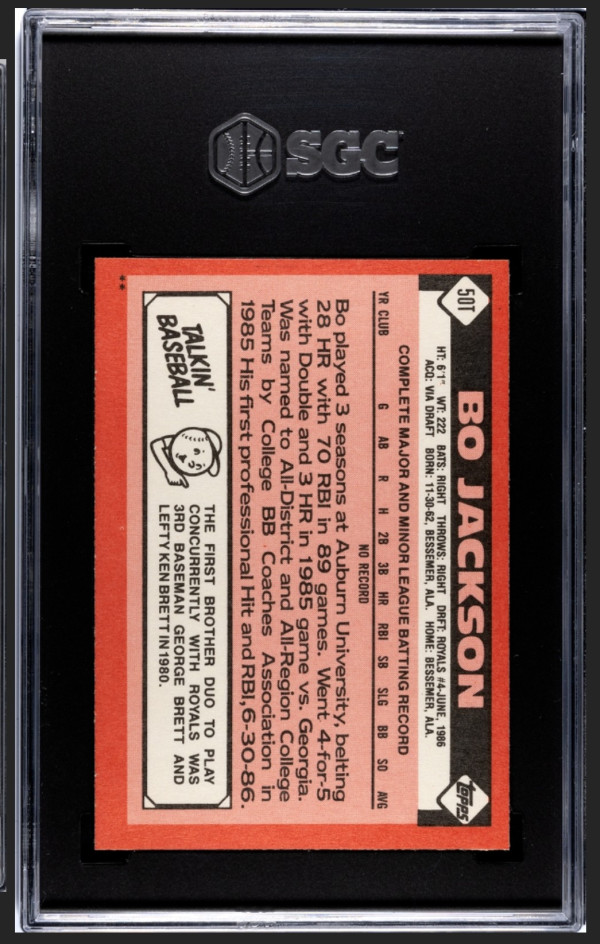 1986 Topps Traded Bo Jackson #50T Rookie RC (SGC 8.5)