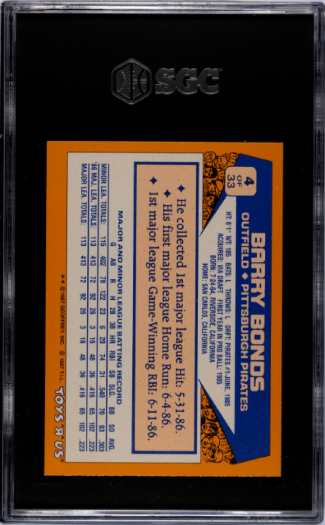 1987 Toys "R" Us Barry Bonds SGC 9