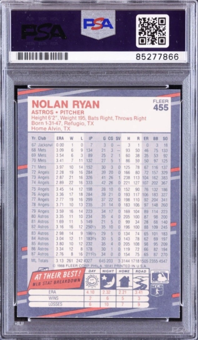 1988 Fleer Nolan Ryan PSA/DNA Auto Gem 10, Inscribed “All Time K King”