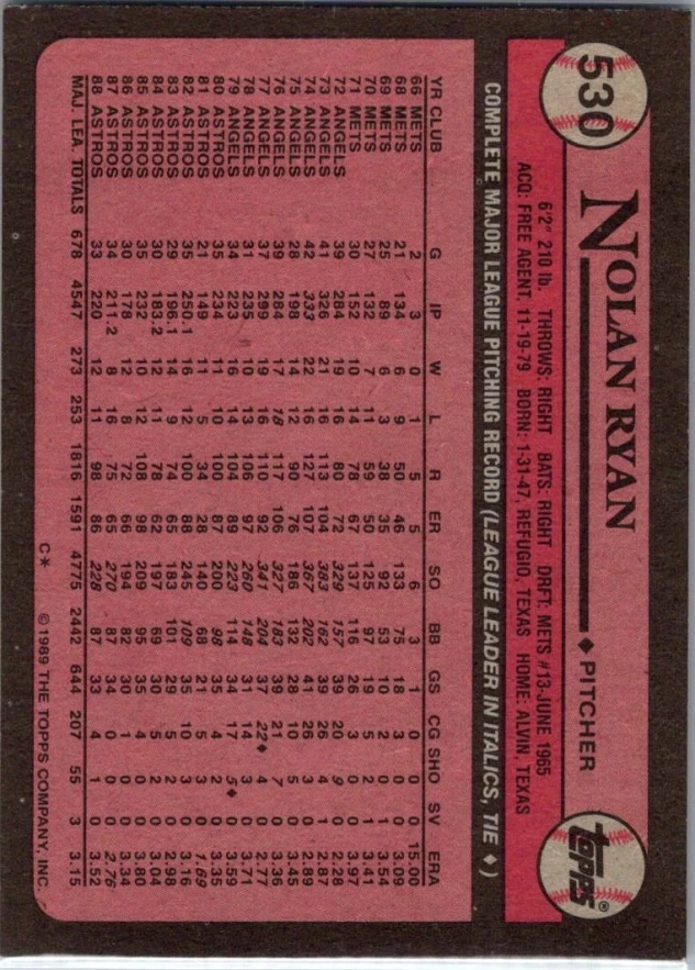 This is a nice example of a 1989 Topps #530 Nolan Ryan