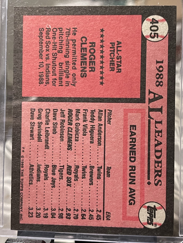 1989 Topps All Star Roger Clemens #405 Collector's Edition (Tiffany)