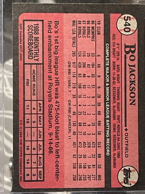 1989 Topps Bo Jackson #540 Collector's Edition (Tiffany)