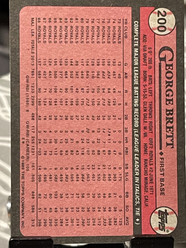 1989 Topps George Brett #200 Collector's Edition (Tiffany)