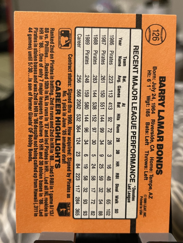 1990 Donruss Barry Bonds #126 Pittsburgh Pirates