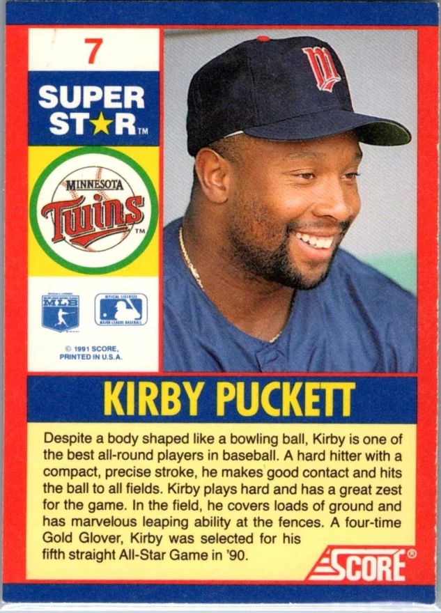 This is a nice example of a 1991 Score 100 Superstars #7 Kirby Puckett