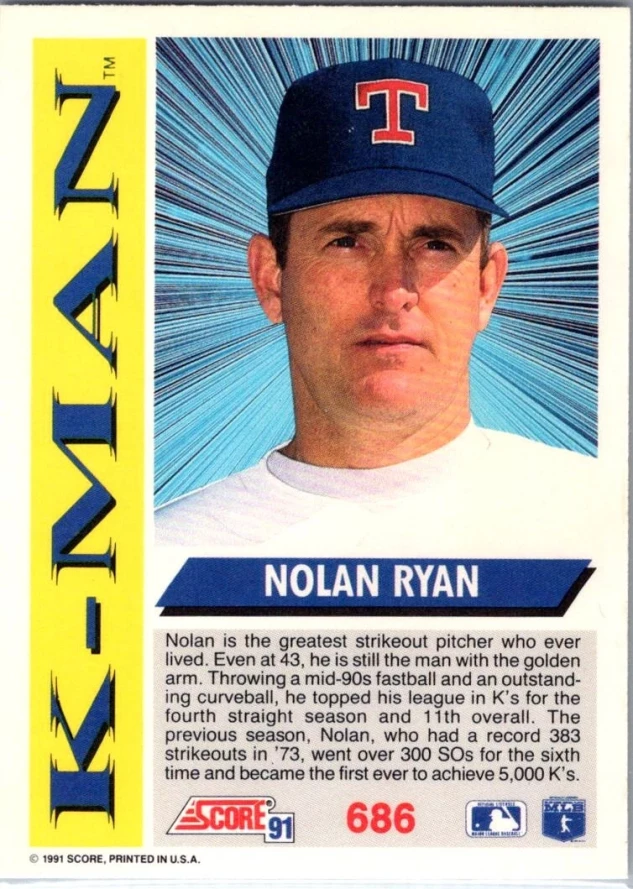 This is a nice example of a 1991 Score #686 Nolan Ryan