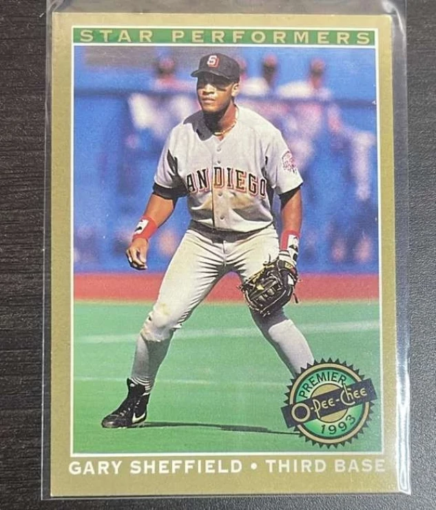 This is a nice example of a 1993 O-Pee-Chee Premier - Star-Performers #6 Gary Sheffield