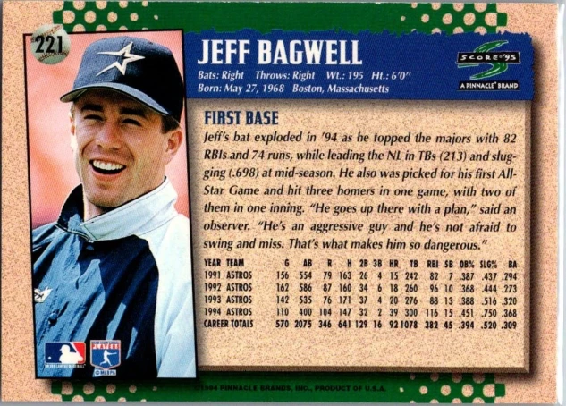 This is a nice example of a 1995 Score #221 Jeff Bagwell