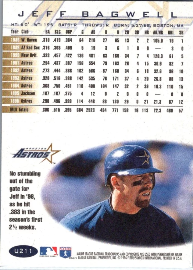In 1996 Jeff Bagwell played for the Houston Astros.