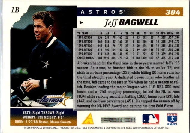 In 1996 Jeff Bagwell played for the Houston Astros.