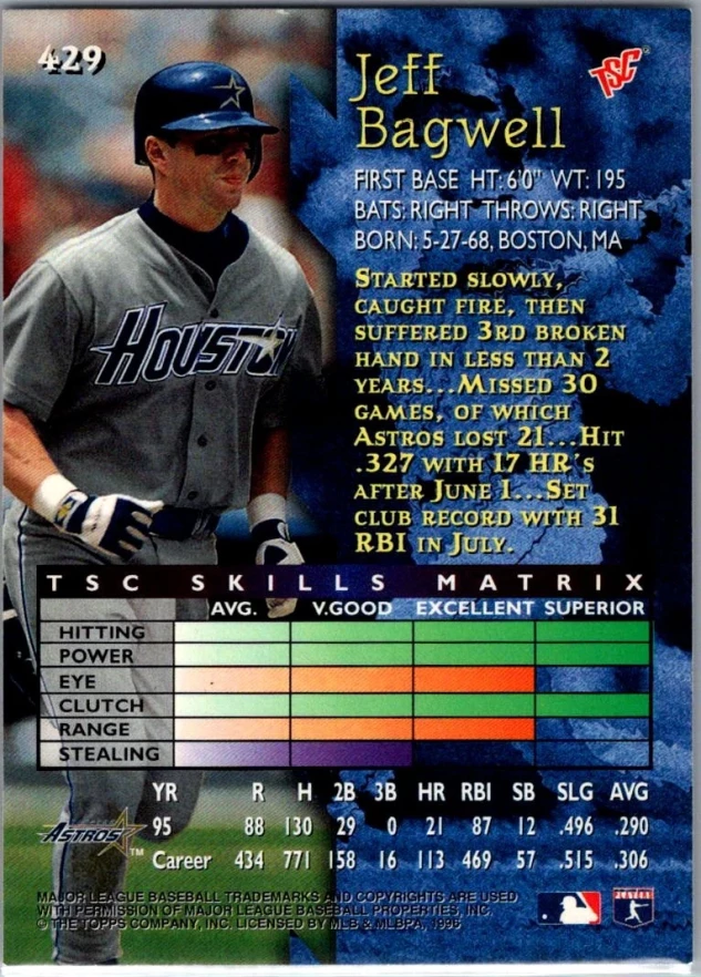 This is a nice example of a 1996 Stadium Club #429 Jeff Bagwell