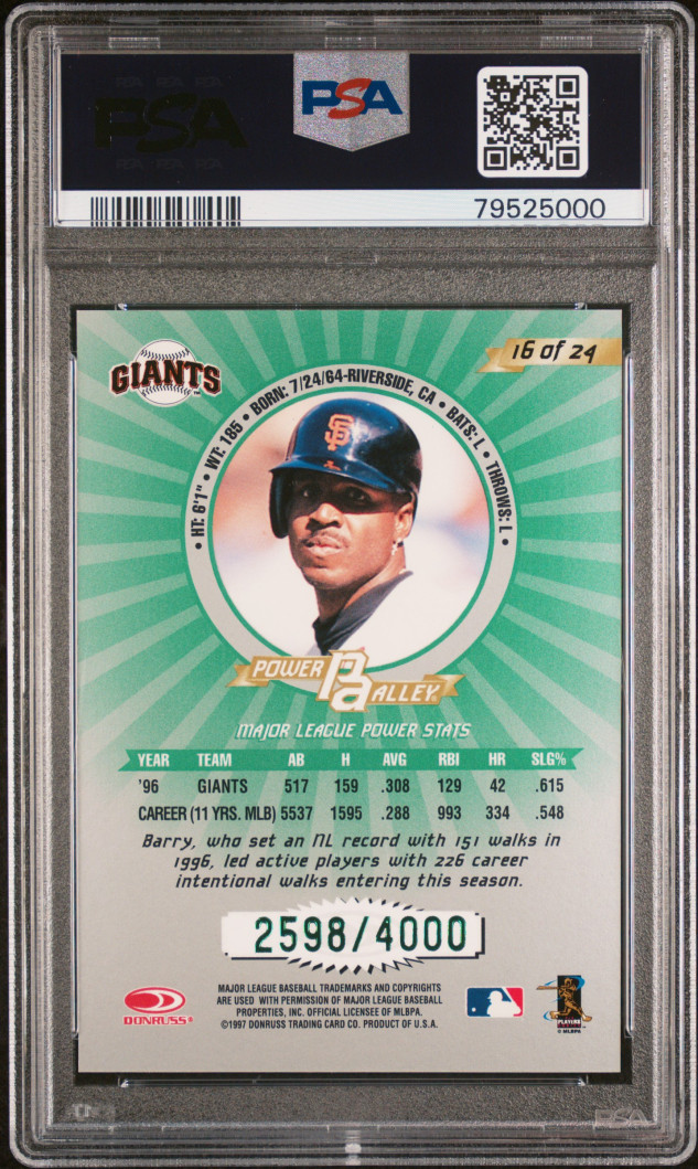 1997 Donruss Update Power Alley Barry Bonds Power Alley