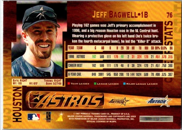 This is a nice example of a 1997 Pinnacle #76 Jeff Bagwell