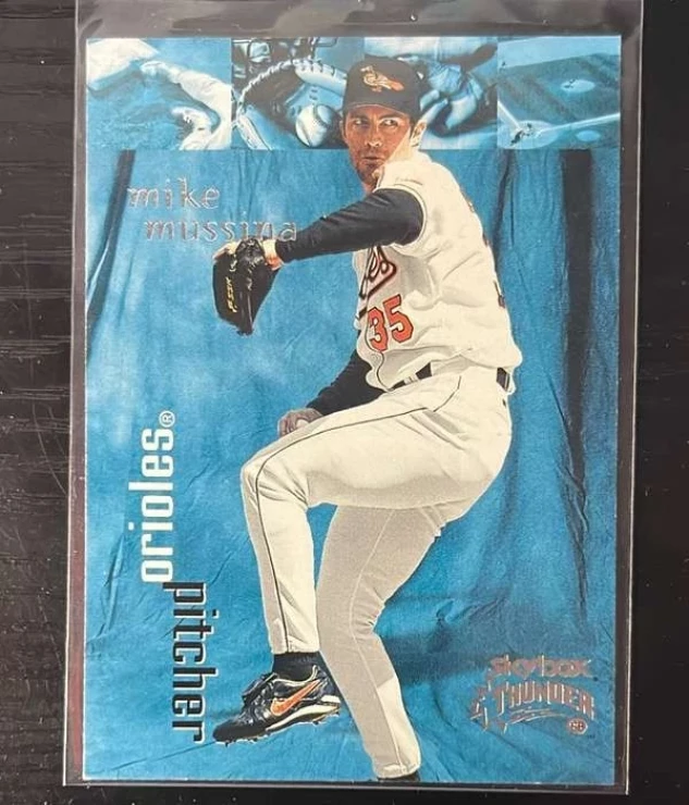 This is a nice example of a 1999 SkyBox Thunder #125 Mike Mussina