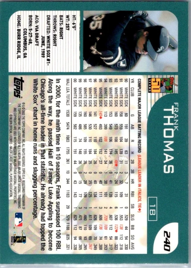 This is a nice example of a 2001 Topps #240 Frank Thomas