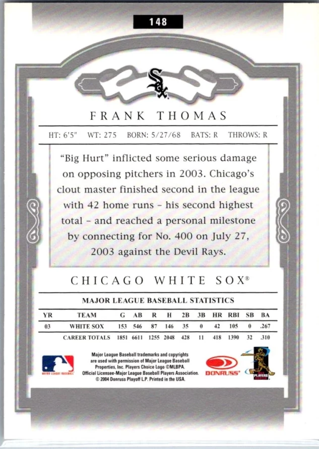 This is a nice example of a 2004 Donruss Classics #148 Frank Thomas