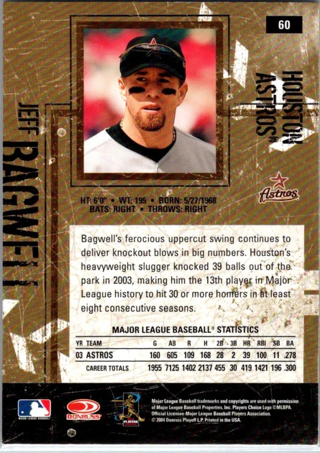 This is a nice example of a 2004 Donruss Leather & Lumber #60 Jeff Bagwell