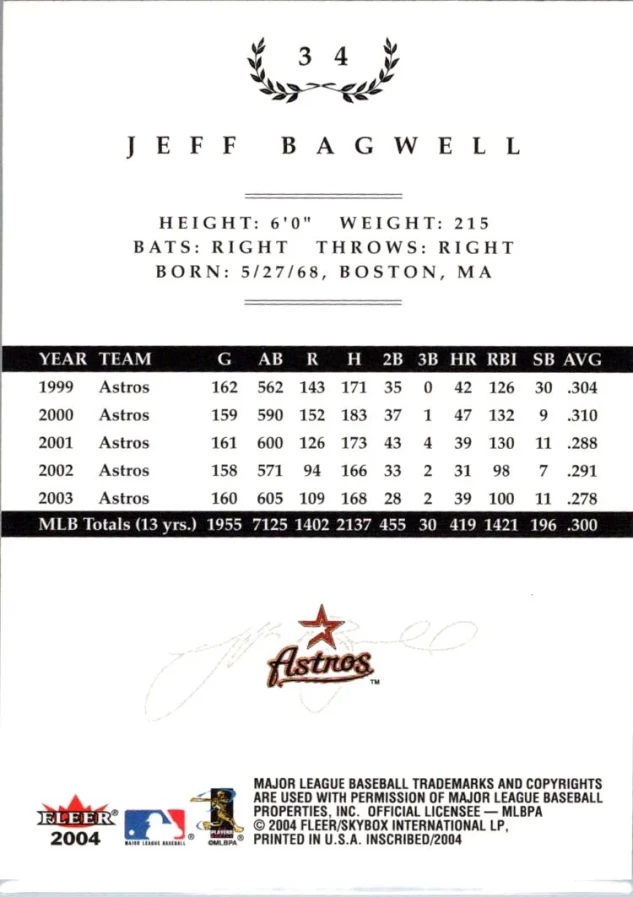 This is a nice example of a 2004 Fleer InScribed #34 Jeff Bagwell