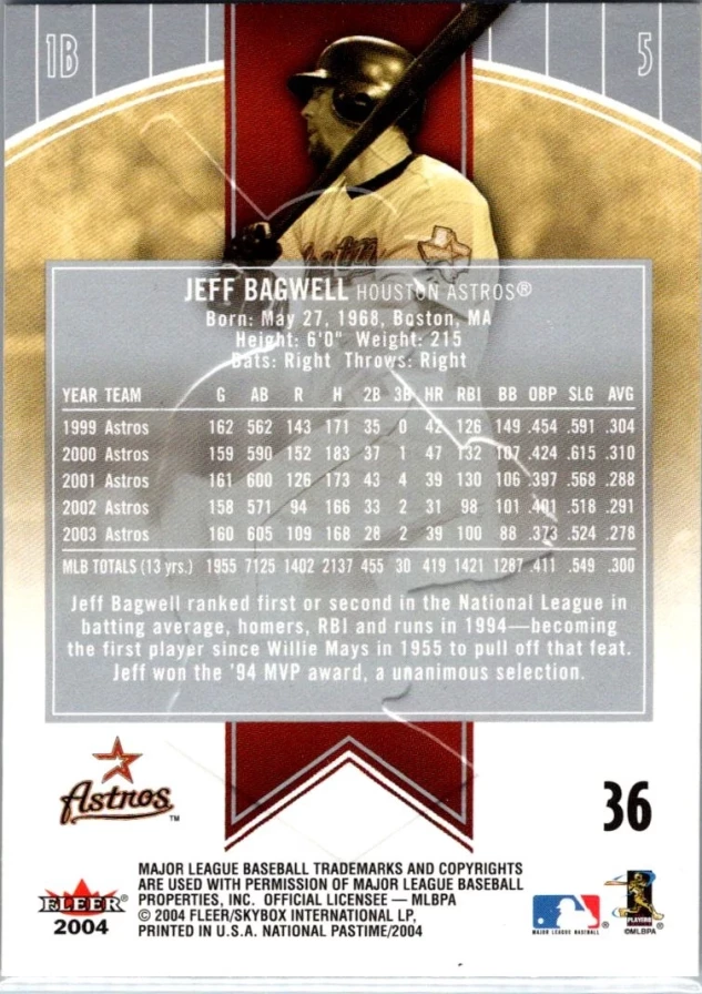 This is a nice example of a 2004 Fleer National Pastime #36 Jeff Bagwell